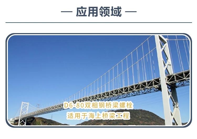 栢爾斯道弗生產(chǎn)的【D6-80雙相鋼橋梁螺栓】采用雙相不銹鋼材質(zhì),鹽霧測(cè)試1000h無(wú)紅銹,氯化物耐受濃度≤50000mg/L,符合IS03506認(rèn)證,適用海上橋梁工程,D4-80(800MPa抗拉)